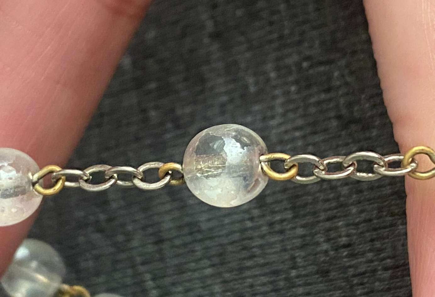 I did additional research on rosary chains that turned gold plated and discovered that this also happened to author Kenneth E. Nowell. In his experience the jeweler apologized that the rosary chain links were only gold plated. I smiled at that. In my experience with my rosary, it felt like a sprinkling from heaven as I prayed and so the gold plating seemed most likely. Also, the base of each rosary chain turned gold on my beads has a bit of silver near the base. You can see it in the zoom.